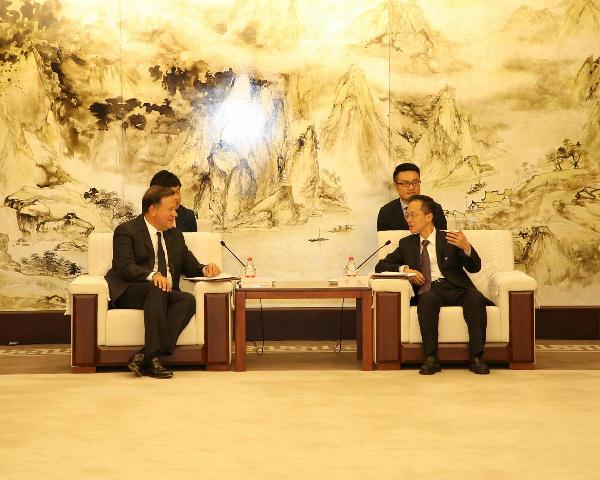 11月19日下午,正在中国进行国事访问的巴拿马共和国总统胡安·卡洛斯·巴雷拉,到访中国建筑工程总公司北京总部,与中国建筑工程总公司党组书记、董事长官庆友好会谈。