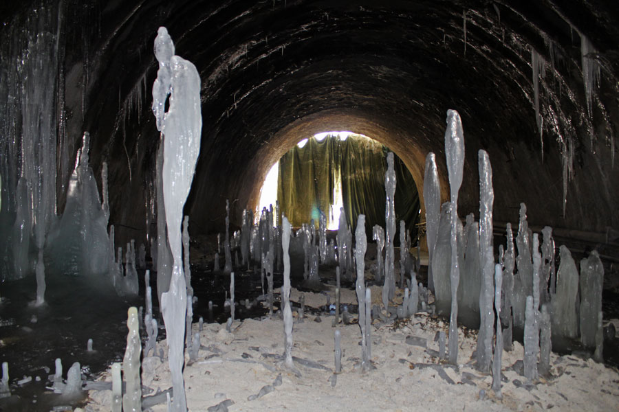 隧道内一人多高的冰柱 冒着洞顶落石和随时塌方的危险,大家迅速制定抢险方案。按照“管超前、严注浆、短开挖、强支护、快封闭、勤量测”的十八字方针,通过反压回填、加密拱架和超前注浆等措施,确保安全通过…… 身为共产党员的江章保,主动站了出来,带头向前冲,成功化解了这次施工难题。 在随后的日子里,项目团队在他的带领下,创下了4377米高海拔超特长公路隧道单月进尺195米的施工纪录。 与此同时,各项课题的研究也在有条不紊地进行之中。分段式增压供电方式取得成功,冬季施工关键技术取得突破,光面爆破控制技术逐步成熟,绿色施工综合技术得到应用…… 走出去 2017年9月26日,历史将铭记这个时刻,雀儿山隧道正式通车。 2014年4月28日,雀儿山人“六坚精神”(坚定、坚强、坚毅、坚决、坚韧、坚持)走进人民大会堂作报告。 2014年7月27日,中华全国总工会中国海员建设工会主席丁小岗,登上雀儿山,授予雀儿山项目“全国工人先锋号”荣誉称号。 2017年3月5日,雀儿山项目获得“全国青年文明号”荣誉称号。 2018年9月18日,课题获评中国建筑科技进步一等奖。2018年11月7日,雀儿山隧道捧得国际隧道界“奥斯卡”奖——国际隧道协会(ITA)2018年度杰出工程奖。